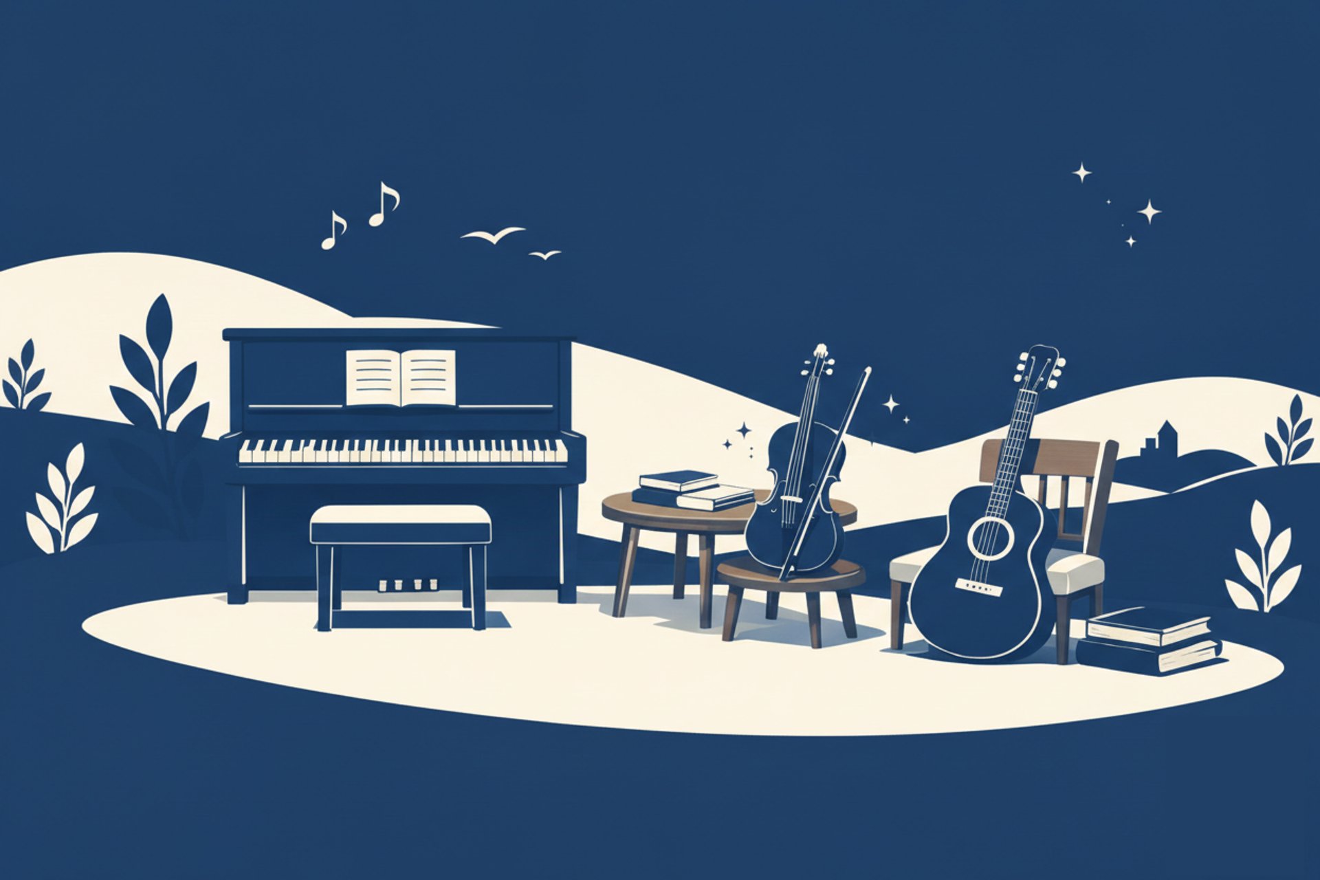 Piano, guitar, and violin lessons tailored for every skill level.
